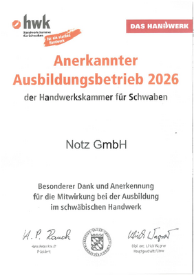 Urkunde "Anerkannter Ausbildungsbetrieb 2026"